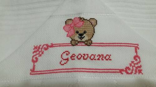 Nomes alfabeto em ponto cruz para toalhinha de boca.